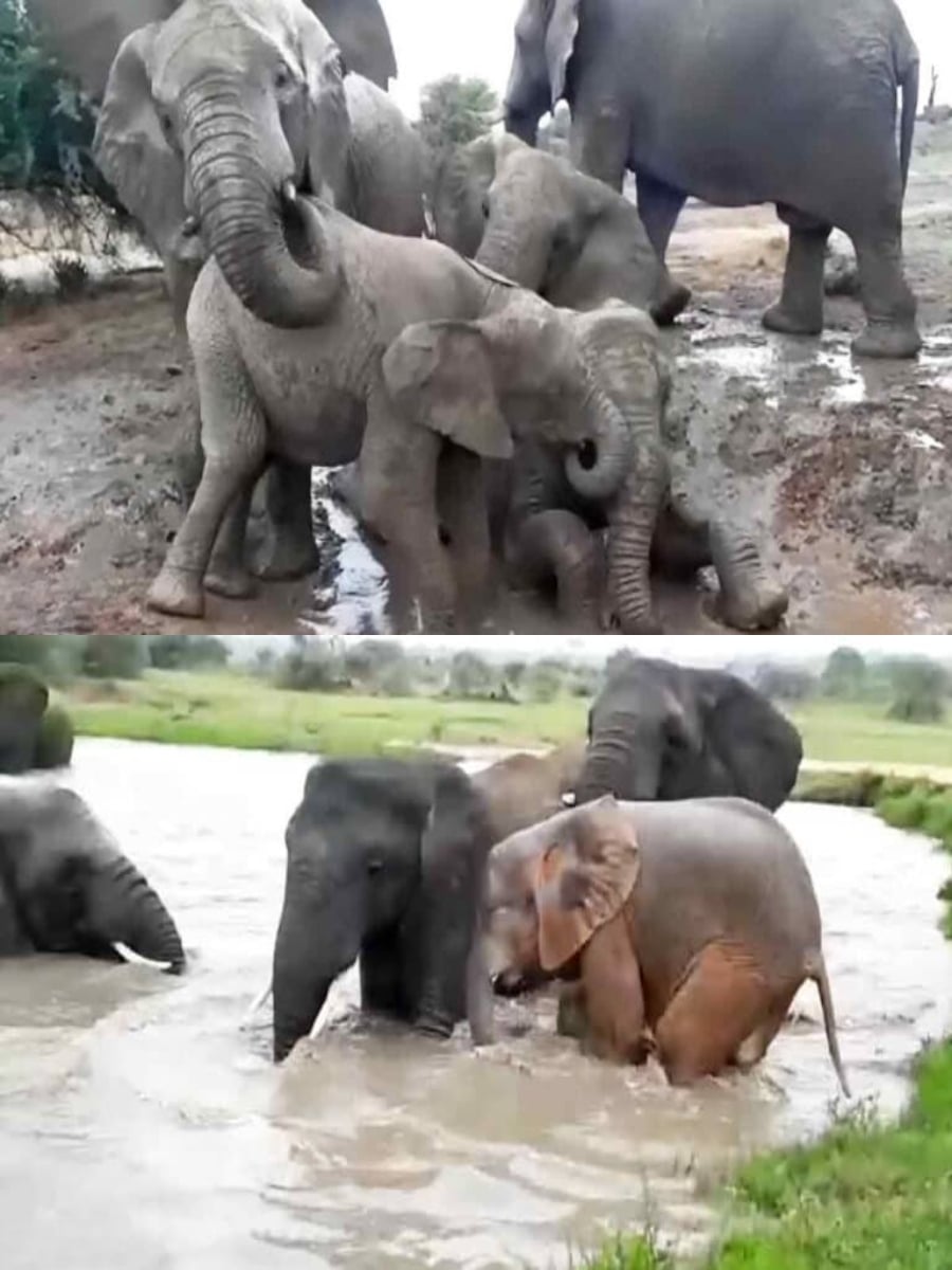 Elephants Heartwarming Sight of Rare Albino Elephant Playfully Splashing in Mud Pit at South Africa’s HERD Orphanage Read More