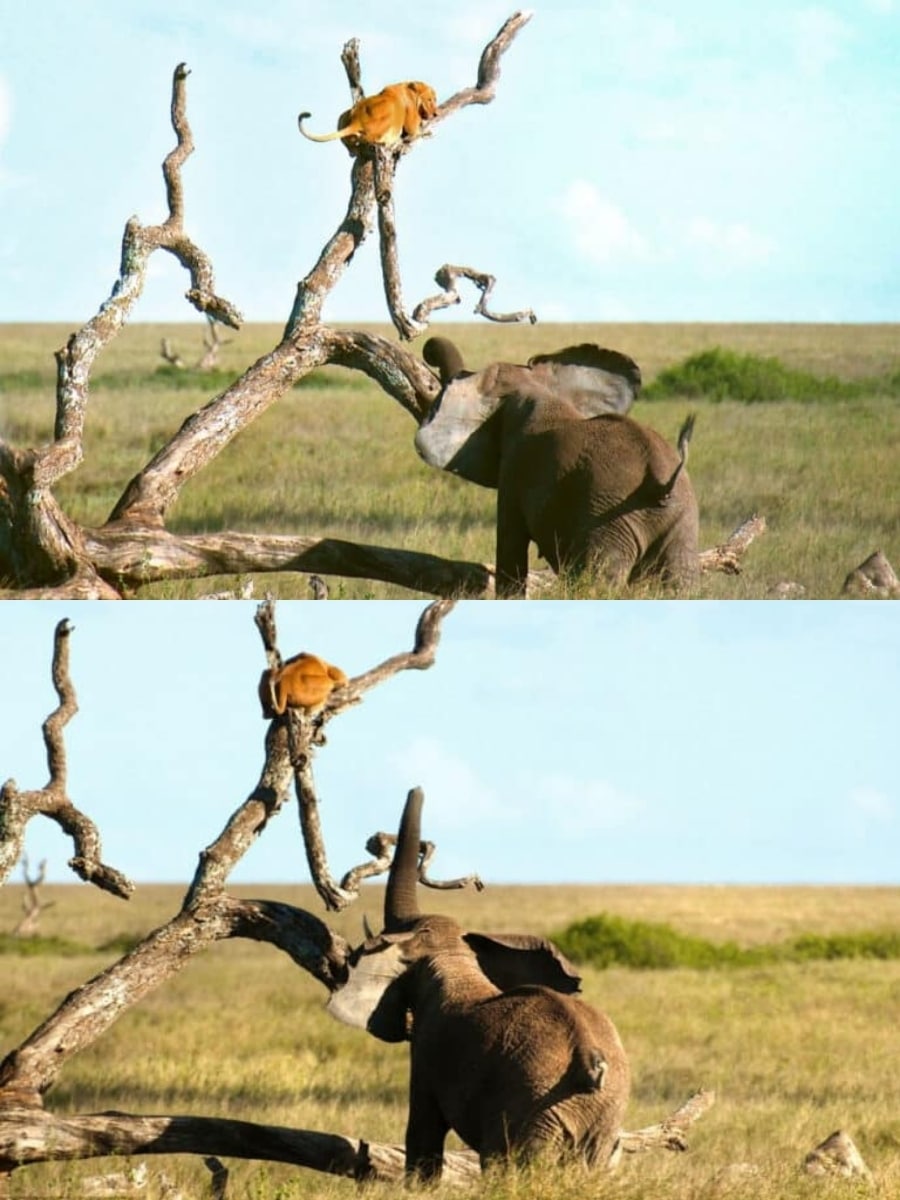 Epic Showdown: Lioness vs. Elephant in the Serengeti