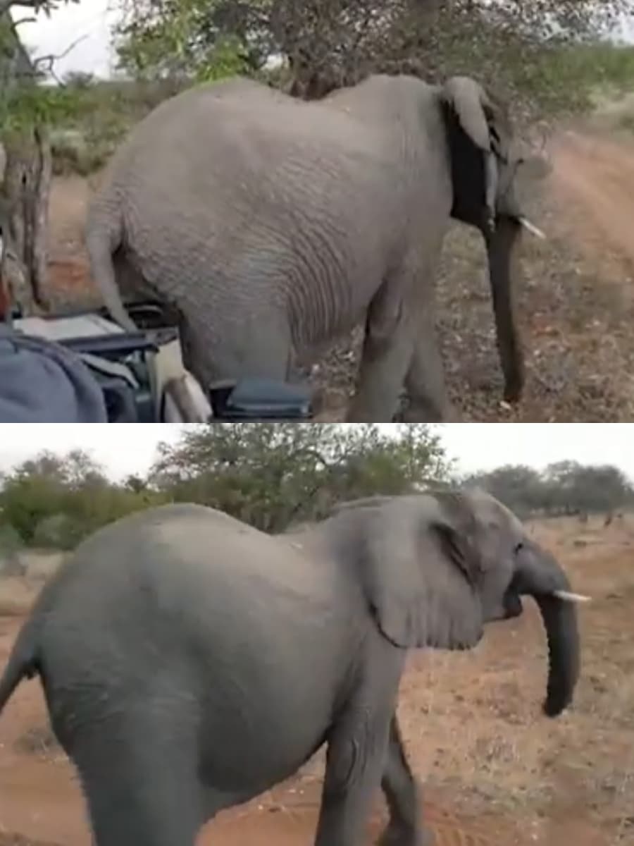 When the Wild Calls: Elephant Uses Safari Vehicle as Scratch Post, Leaving Tourists in Stitches!
