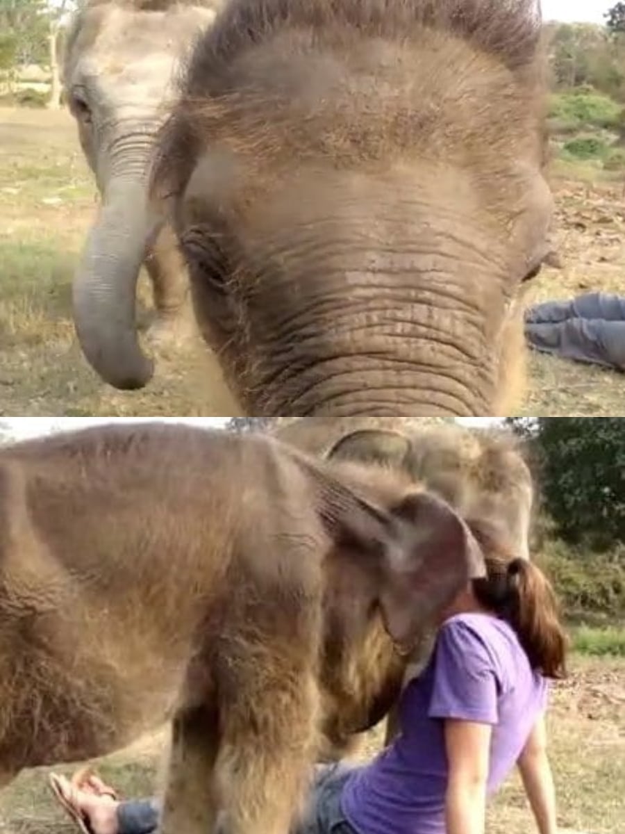 Adorable Baby Elephant Attempts to Grasp Girl’s “Trunk”