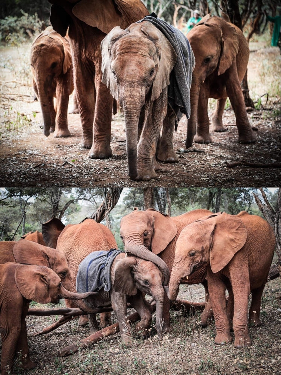 Baby Elephant Finds Comfort in Orphan Herd After Losing His Mom