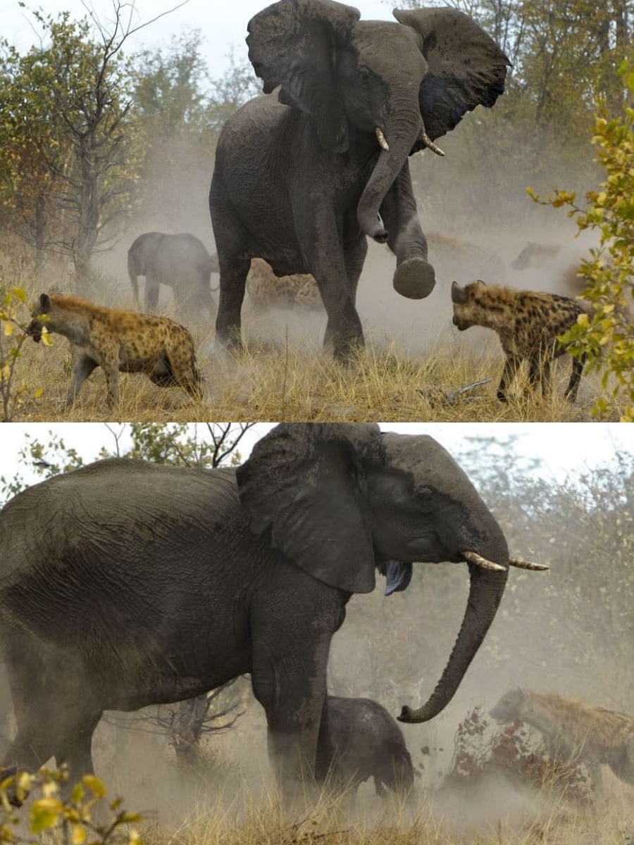 Brave Elephant Fends Off Hyenas to Save Injured Calf in Breathtaking Encounter