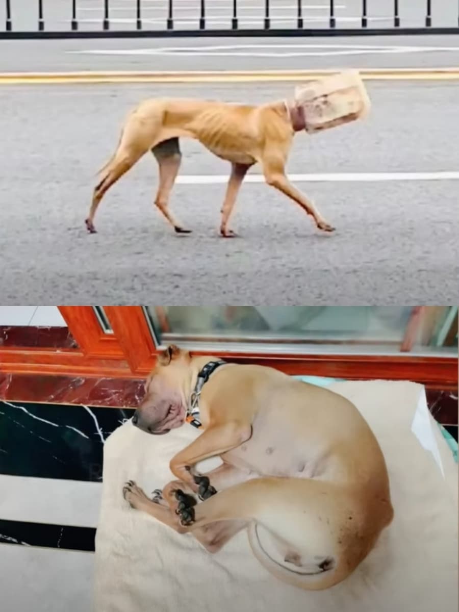 Stray Dog Trapped in Plastic Jar Refuses Help, Near Death from Starvation