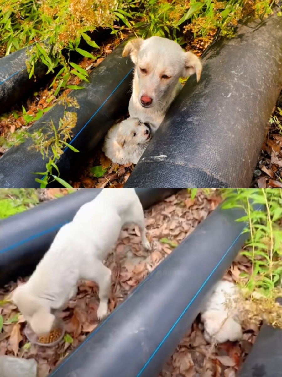 Stray Mother Dog Hides Her Puppies in Crevices, Fighting to Keep Them Alive