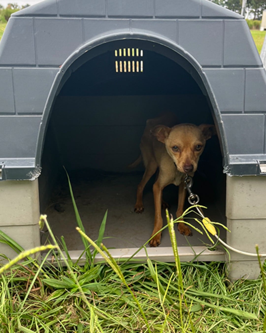 Chico, a Chihuahua found in a trailer park in rural North Carolina, knew this hardship all too well. He was discovered in a frail state, tethered to an old trampoline with a bungee cord, and had been left with barely any food or water.