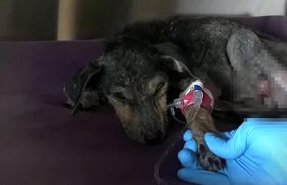 The medical team worked quickly to stabilize him. Jordan received treatment for parasites, scabies, and dehydration. The wound where his paw had been was cleaned and stitched to prevent infection, and a blood transfusion gave him the strength he needed to fight. The veterinarian described his survival as a miracle.