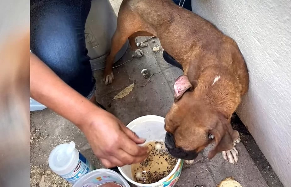 Isaac, who discovered Betty on his way home, was deeply moved by her suffering. The helpless dog, though weak, seemed to plead for help as soon as she woke up. Determined to save her, Isaac stayed by her side all night, doing everything he could to ease her pain. By morning, he rushed her to the veterinary clinic for urgent care.