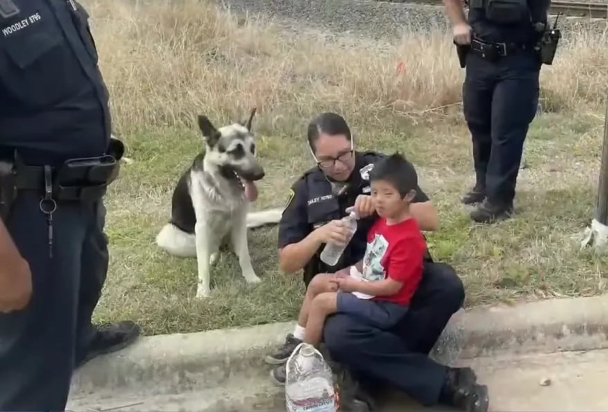 Alejandro remained vigilant, never straying far from the child’s side, even when help arrived. Despite the officers’ presence, Alejandro refused to be separated from the boy, even jumping into the car alongside him.