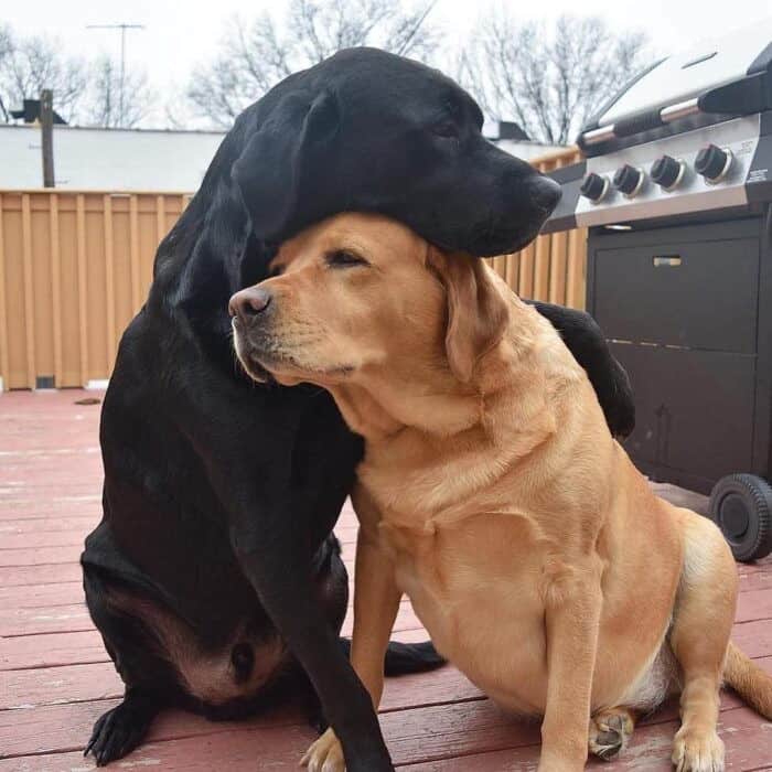 Meet Max and Cooper, a pair of lively Labrador Retrievers deeply cherished by their loving family in a serene neighborhood.
