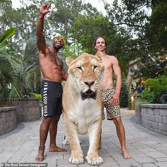 Photographs from Myrtle Beach, South Carolina, show Apollo walking alongside animal conservationists Mike Holston, known as “The Real Tarzan,” and Kody Antle, highlighting just how large he is compared to his handlers.