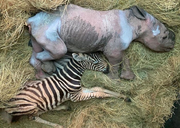 This narrative highlights an extraordinary friendship between two baby animals – a rhino and a zebra – under unusual circumstances.