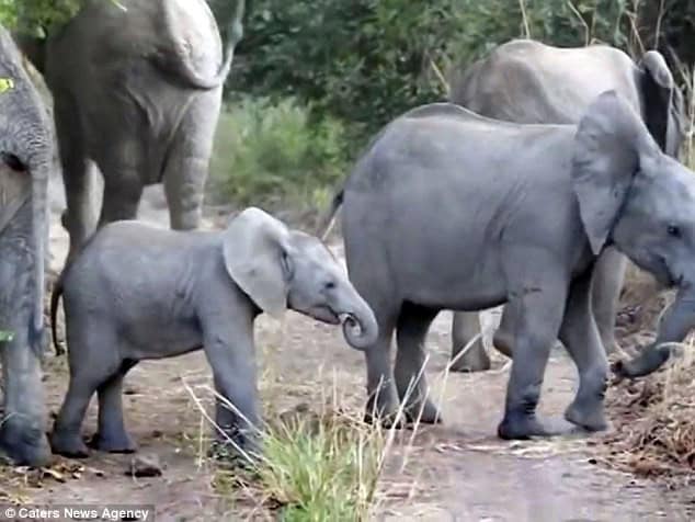 Captured on camera, the little elephant put on an enthusiastic display, even rearing up on its hind legs as if practicing its most intimidating moves.